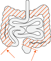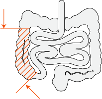 The end of the intestine, which is smaller, is connected to the side of the larger section².