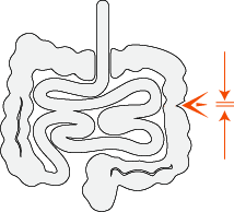 The end of the intestine, which is smaller, is connected to the side of the larger section².